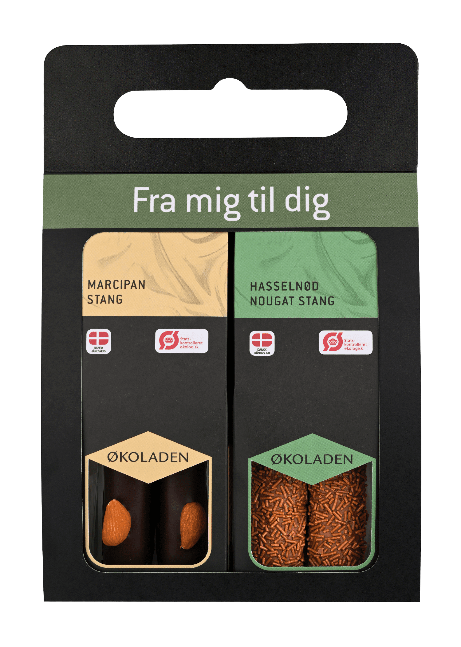 Flot sampak med budskabet “Fra mig til dig”. Æsken består af de to dragée varianter: Marcipanstænger og hasselnød nougatstænger. En lækker kombination perfekte til at give som gave eller til at nyde selv.